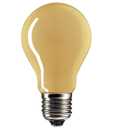 240V 25 Watts Base E27 Standard Screw Fitting Finish: Amber Coloured Incandescent light bulbs produce an artificial light more condusive to our bio...