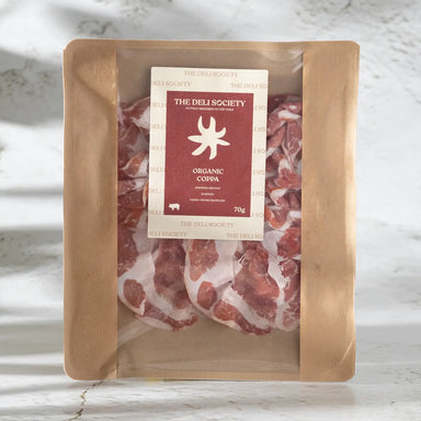 The Deli Society Organic Coppa. Bronze winner at the World Charcuterie Awards 2023, 100% organic, high animal welfare charcuterie. With paperbac...