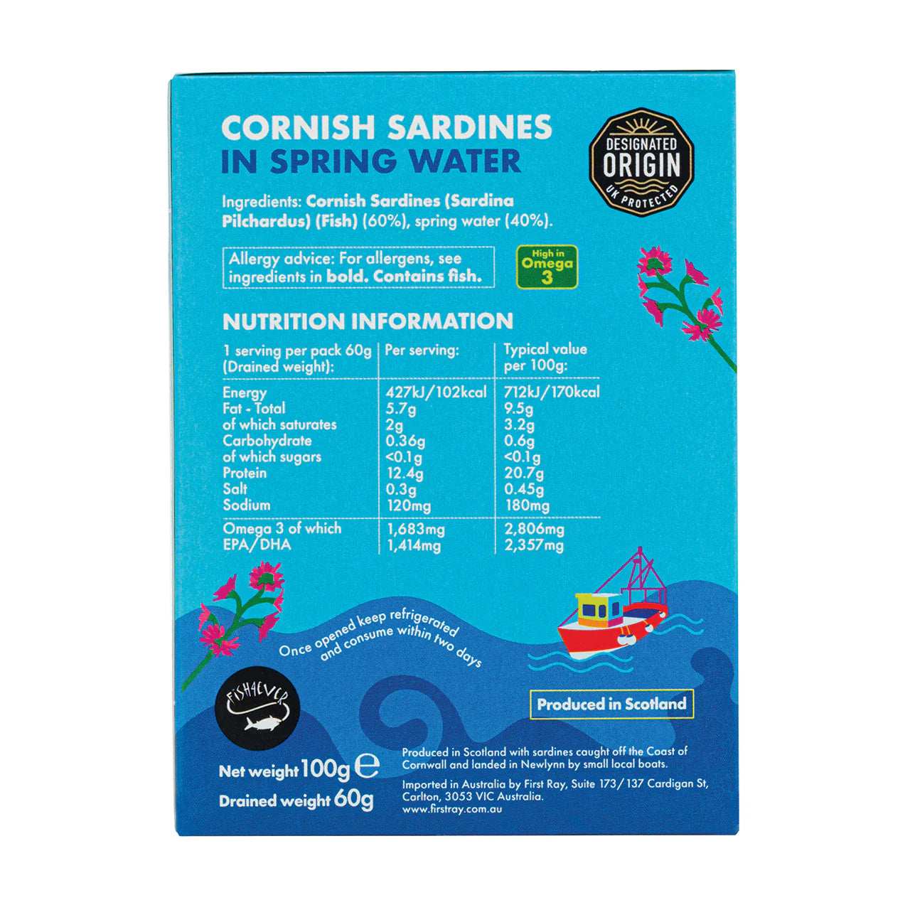 Ingredients: Cornish Sardines (Sardina Pilchardus) (Fish) (60%), Spring water (40%)